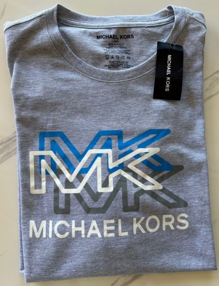 Polera Michael Kors azul de manga corta con logotipo frontal. Prenda Michael Kors con cuello redondo, ideal para quienes buscan una polera Michael Kors original.